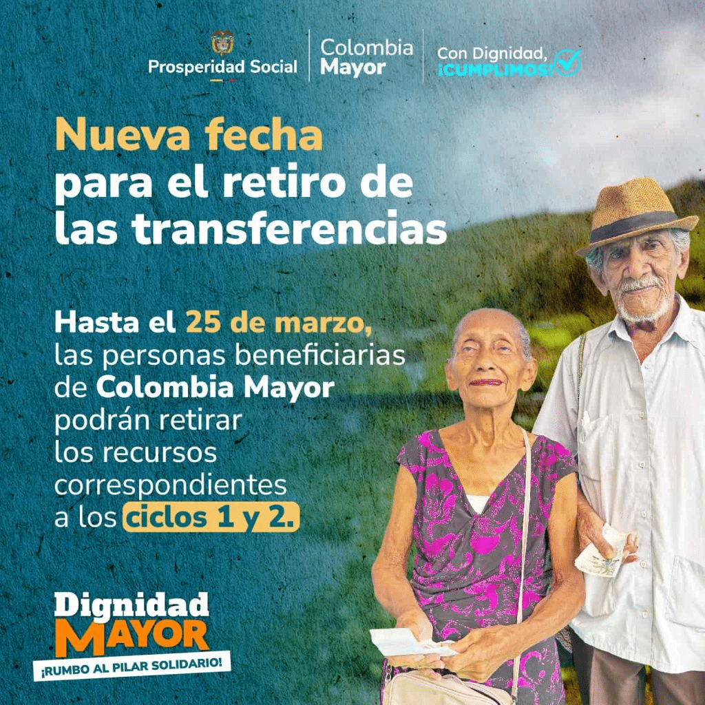 El programa Colombia Mayor anunció una importante noticia para millones de beneficiarios en el país: se amplió el plazo para retirar los pagos correspondientes a los ciclos 1 (enero) y 2 (febrero) de 2026.