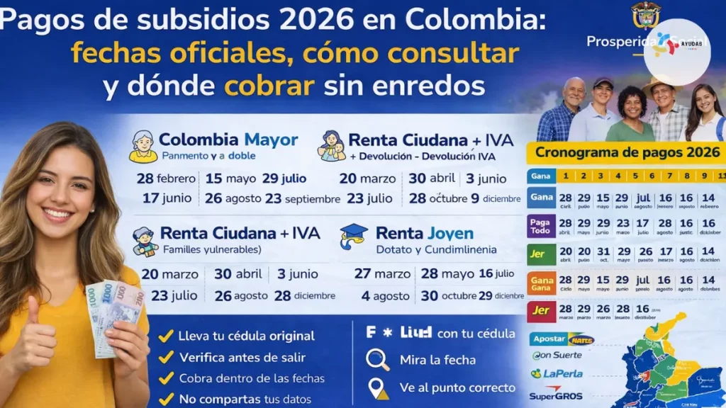 - Pagos de subsidios 2026 en Colombia: fechas oficiales, cómo consultar y dónde cobrar sin enredos