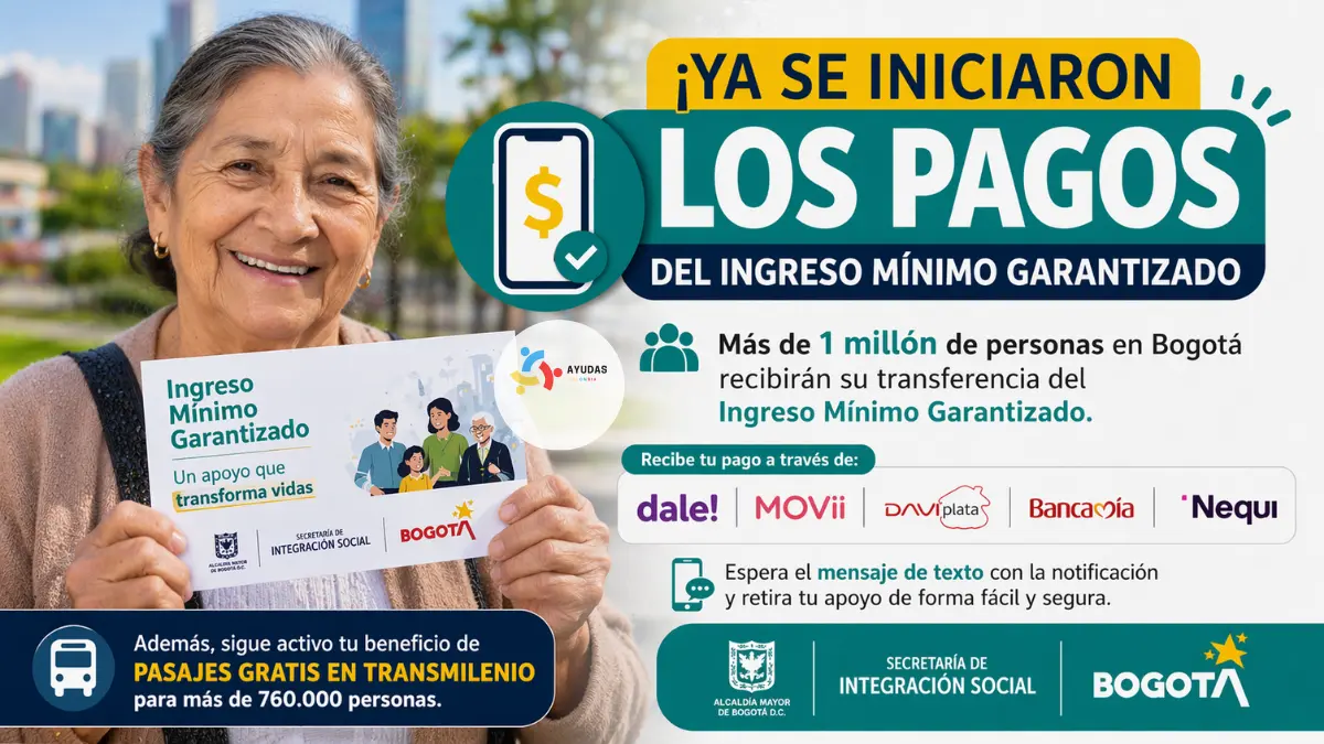 Los pagos de abril del Ingreso Mínimo Garantizado 2026 en Bogotá ya están en marcha, beneficiando a más de un millón de personas con transferencias económicas y apoyos complementarios como transporte gratuito.